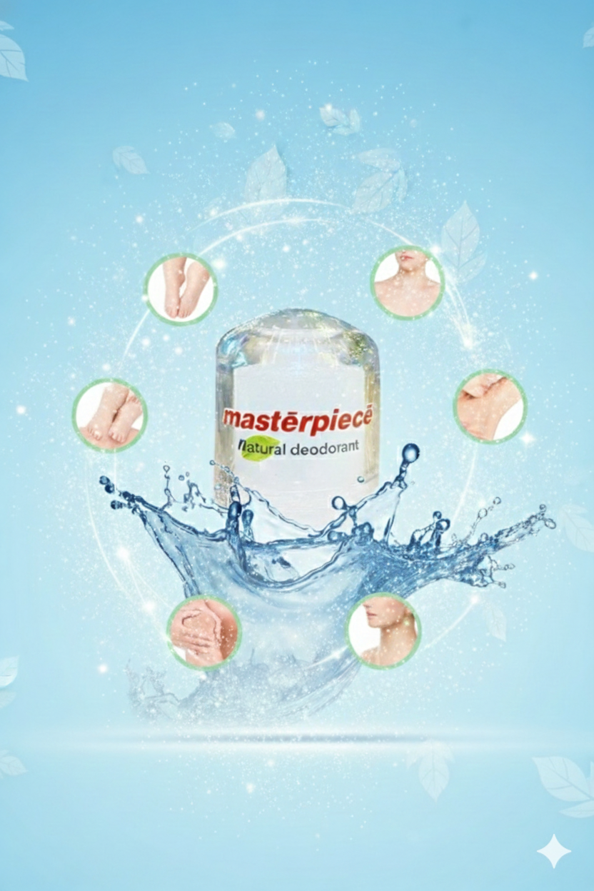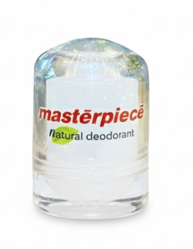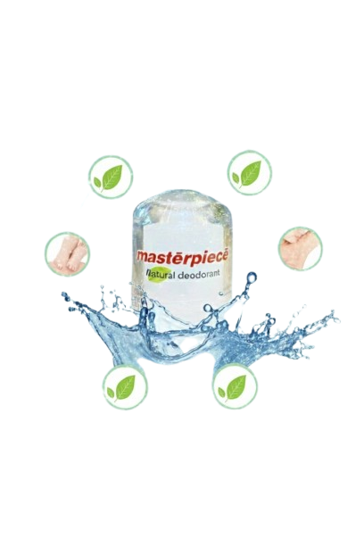 Masterpiece Natural Deodorant is crafted using pure natural mineral salts, known for their powerful antimicrobial and astringent properties. Unlike conventional deodorants and antiperspirants, our formula does not block natural perspiration. Instead, it works by preventing the growth of odor-causing bacteria while allowing your body to sweat naturally—just as it was designed to.